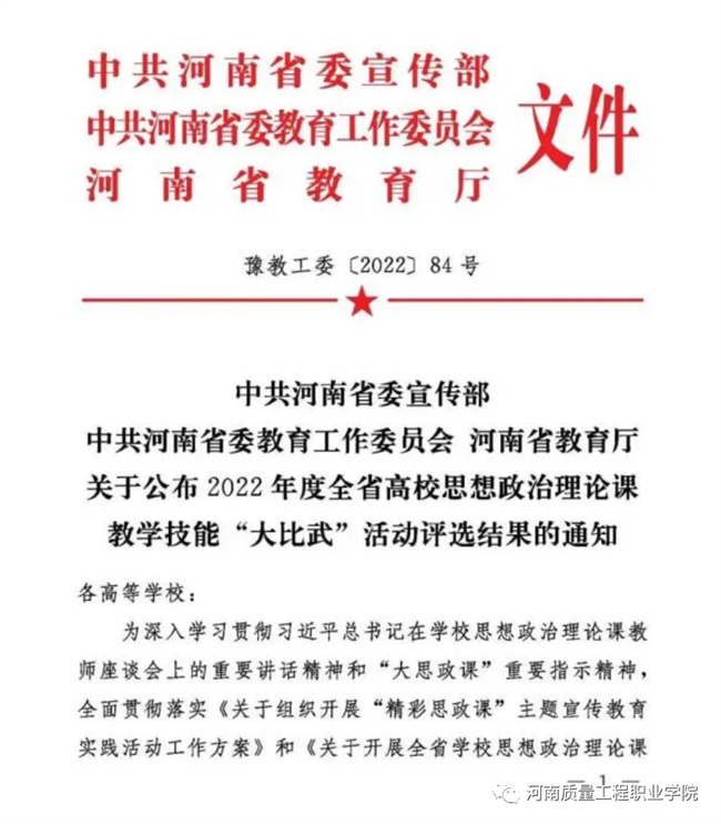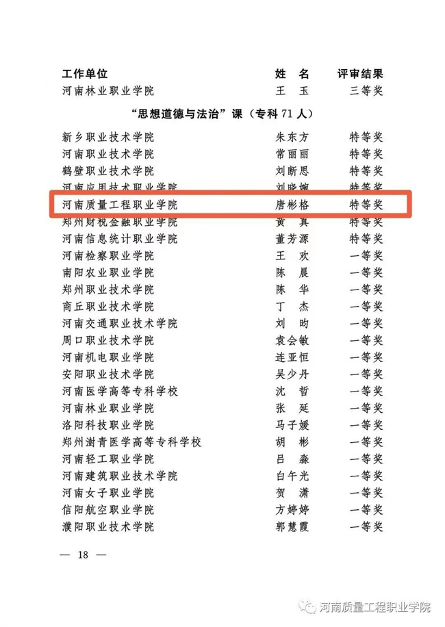 河南省高校思政“大比武”,河南質(zhì)量工程職業(yè)學(xué)院教師獲佳績