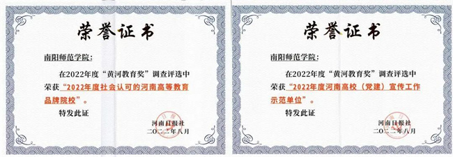 中新河南網(wǎng)9月10日電 近日,由河南日?qǐng)?bào)社主辦的第十三屆“黃河教育論壇”暨“2022年度黃河教育獎(jiǎng)”評(píng)選活動(dòng)結(jié)果揭曉,南陽師范學(xué)院獲評(píng)“2022年度社會(huì)認(rèn)可的河南高等教育品牌院校”和“2022年度河南高校(黨建)宣傳工作示范單位”。