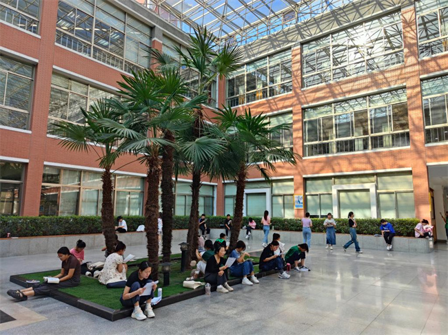 朗朗讀書聲,孜孜勤學影。清晨六、七點鐘,在圖書館大門外草坪上、道路旁、圖書館中廳,不少同學在專心致志地讀書或背誦;圖書館自修室更是座無虛席,人氣爆棚,這些如饑似渴的學生中,多為備戰(zhàn)研究生、公務員、四六級考試而來,也不乏閱讀愛好者。八點剛過,掃過場所碼的讀者排隊刷卡(臉)魚貫而入,期刊室、閱覽書區(qū)或電子閱覽室到處都是認真閱讀或埋頭苦學的身影,學生們盡情享受著學習的快樂,圖書館里彌漫著濃厚的學習氛圍。一名大四學生說:她很喜歡待在圖書館里,因為圖書館的學習氛圍和環(huán)境秩序良好,在這里每一個同學都在認真地學習,自己也會沉浸在這種競爭氛圍中更加努力,感覺自己的每一個細胞都異常興奮,充滿拼搏的力量。