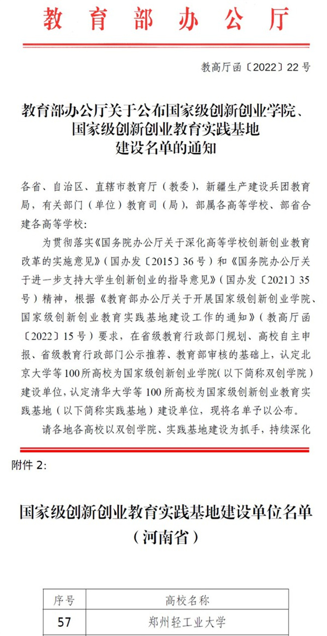 學(xué)校高度重視創(chuàng)新創(chuàng)業(yè)教育工作,以培養(yǎng)創(chuàng)新創(chuàng)業(yè)人才為目標(biāo),重構(gòu)了雙創(chuàng)教育的全新頂層設(shè)計(jì),制訂了融入雙創(chuàng)教育的人才培養(yǎng)方案,設(shè)計(jì)了逐步遞進(jìn)的創(chuàng)新創(chuàng)業(yè)課程體系,搭建了多層次雙創(chuàng)實(shí)踐平臺,雙創(chuàng)教育與專業(yè)教育深度融合,校企校地資源充分利用,學(xué)生創(chuàng)新創(chuàng)業(yè)能力顯著提升。2020年該入選河南省首批深化創(chuàng)新創(chuàng)業(yè)教育改革示范高校。該校在中國高等教育學(xué)會2017-2021年全國普通高校學(xué)科競賽排行榜中位列第83名,在2021年學(xué)科競賽排行榜中位列第70名。