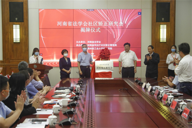 與會(huì)領(lǐng)導(dǎo)為河南省法學(xué)會(huì)社區(qū)矯正研究會(huì)揭牌