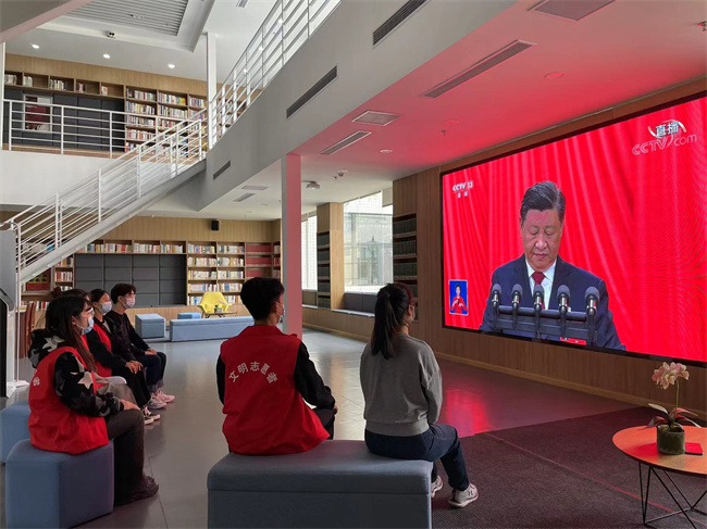為方便師生觀看二十大開幕會,學院辦公樓、圖書館、教室、廣場、操場、宿舍樓等場所的電子屏全部播放開幕實況,及時宣傳報道二十大精神,積極宣傳二十大召開盛況和相關(guān)新聞。
