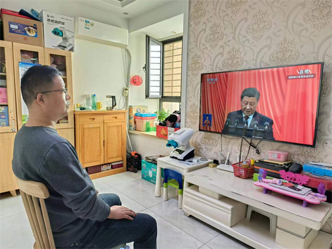 居家教師收看二十大開幕實況