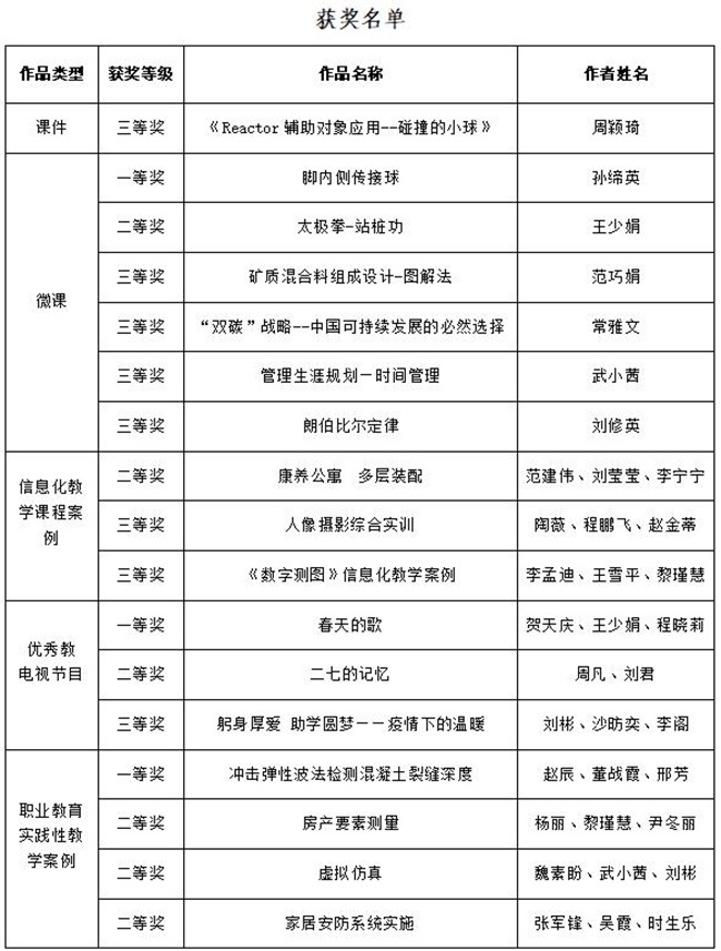 中新河南網(wǎng)10月19日電 近日,河南省教育廳發(fā)布《關(guān)于公布河南省第二十六屆教育教學(xué)信息化交流活動評選結(jié)果的通知》,河南水利與環(huán)境職業(yè)學(xué)院共上報職業(yè)教育組20件作品,有17件作品獲獎,其中一等獎3件,二等獎6件,三等獎8件。近年來,該校十分重視教育信息化教學(xué)工作,廣大教師積極投入到信息化教學(xué)研究、改革與實踐工作中,打造特色,形成亮點,為提升學(xué)校人才培養(yǎng)質(zhì)量,助力“雙高”校建設(shè)貢獻智慧和力量。(河南水利與環(huán)境職業(yè)學(xué)院供稿)