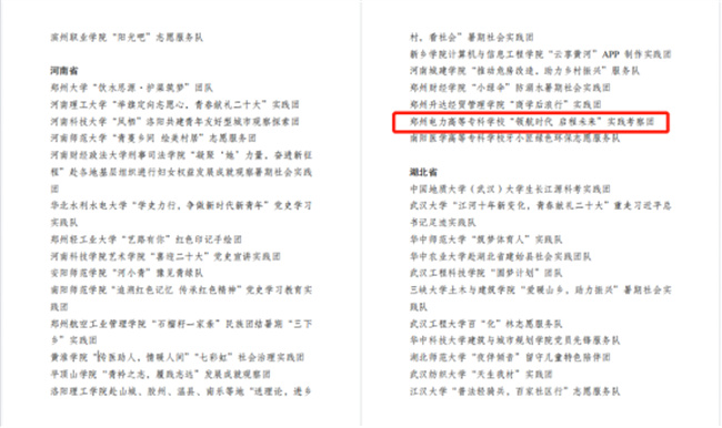 中新河南網(wǎng)10月21日電(李安杰) 近日,共青團(tuán)中央對(duì)2022年全國(guó)大中專(zhuān)學(xué)生志愿者暑期文化科技衛(wèi)生“三下鄉(xiāng)”社會(huì)實(shí)踐活動(dòng)中表現(xiàn)突出的優(yōu)秀集體和個(gè)人進(jìn)行了通報(bào)表彰。經(jīng)學(xué)校團(tuán)委層層推報(bào),“領(lǐng)航時(shí)代 啟程未來(lái)”實(shí)踐考察團(tuán)(鄭州電力高等專(zhuān)科學(xué)校電氣工程學(xué)院)榮獲2022年全國(guó)“三下鄉(xiāng)”社會(huì)實(shí)踐“優(yōu)秀團(tuán)隊(duì)”榮譽(yù)稱(chēng)號(hào)(全省共20個(gè)團(tuán)隊(duì)入選,其中專(zhuān)科院校僅兩個(gè)),是繼學(xué)校團(tuán)委獲得全國(guó)“三下鄉(xiāng)”社會(huì)實(shí)踐“優(yōu)秀單位”之后,再次受到共青團(tuán)中央的表彰!