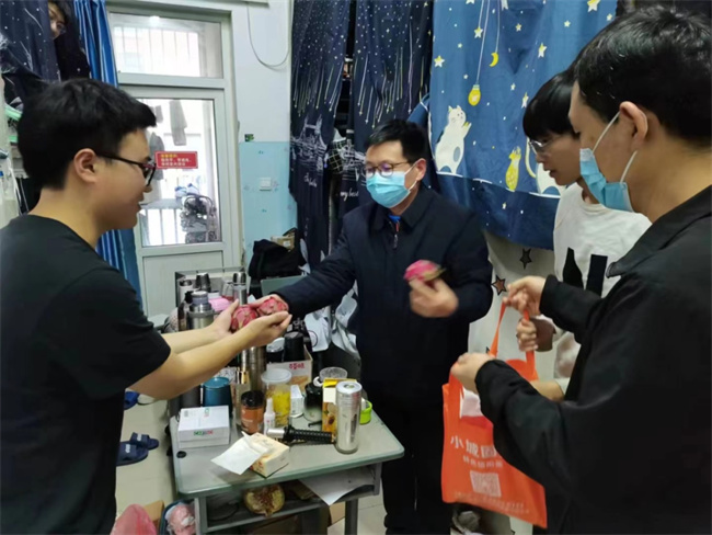 學(xué)院黨總支書記陳潔、學(xué)院學(xué)生工作負責(zé)人張燕麗、學(xué)院教學(xué)工作負責(zé)人黃宗杰,第一時間深入學(xué)生宿舍對學(xué)生進行疏導(dǎo)心理,為學(xué)生帶去水果、速食食物等慰問品。