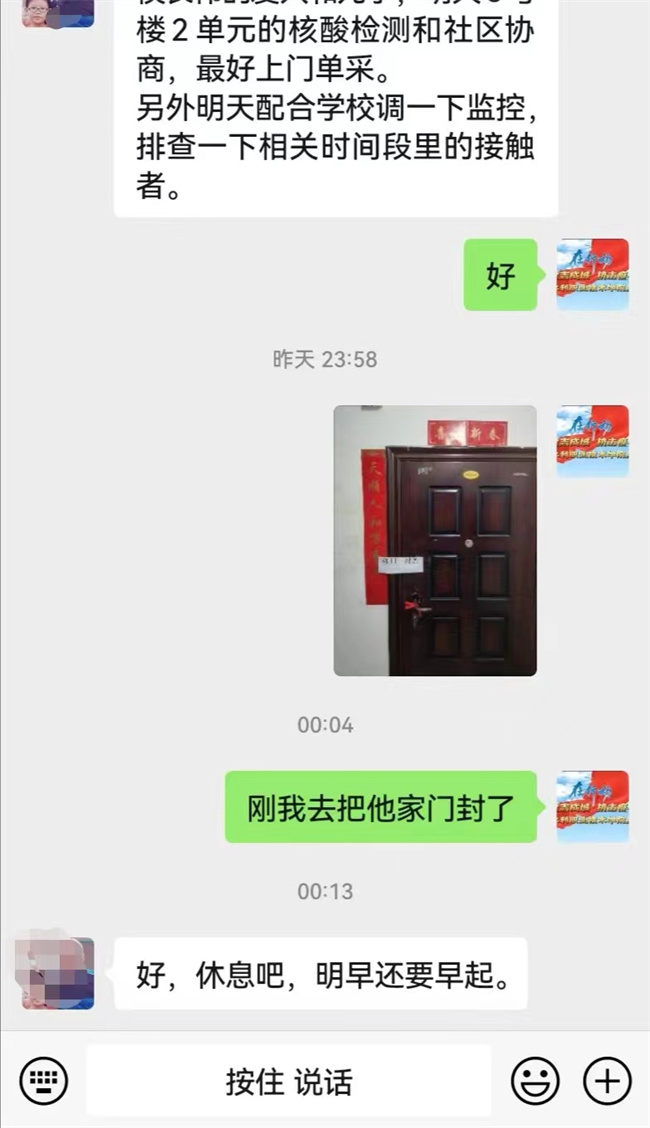 忙完這些,高老師回到辦公室,還沒(méi)來(lái)得及喘口氣,這時(shí)他的手機(jī)鈴聲就開(kāi)始不斷響起。“高老師,我在網(wǎng)上訂的菜,您給看看送到大門(mén)口了嗎?”“高老師,我下午沒(méi)課,可以去當(dāng)志愿者,您給安排一下!”“高老師,家里老人的藥不能斷,如果送的藥到了,請(qǐng)您給安排送一下。”“高老師,家人今天出院回家,您幫忙給社區(qū)協(xié)調(diào)一下,咋回來(lái)呀?”……這樣的電話,他每天能接100多個(gè)。除了電話,他還得在微信群里及時(shí)發(fā)核酸檢測(cè)信息、防控要求,回復(fù)老師及家屬的各種問(wèn)題。用他的話說(shuō):“一有空,我就得給手機(jī)充上電,身上帶塊充電寶,防止手機(jī)沒(méi)電了耽誤大家的事。大家都按要求足不出戶,我得努力做好這1200多戶的服務(wù)工作,盡全力保障大家的正常生活。”
