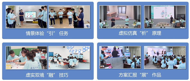 典型案例的入選,是學校大力推進“雙高校”建設(shè)的工作亮點,也是學校探索高職復合型BIM人才“四元融通”綜合育人模式的創(chuàng)新實踐。BIM簡稱建筑信息模型,是建筑的數(shù)字化模型集成應(yīng)用,具有全程可視、在線協(xié)同、虛實結(jié)合等優(yōu)點,2003年開始在全國應(yīng)用并引發(fā)建筑產(chǎn)業(yè)革命,2019年建筑信息模型技術(shù)員成為首批新職業(yè),BIM證書成為首個“1+X”項目。國家大力推進建筑產(chǎn)業(yè)數(shù)字化升級,既需要大量傳統(tǒng)建筑崗位應(yīng)用BIM實現(xiàn)技術(shù)升級(+BIM),又需要大批的專門BIM崗位增值賦能(BIM+),著力培養(yǎng)一批“基礎(chǔ)扎實、一專多能、素質(zhì)優(yōu)良”的復合型BIM人才,迫在眉睫。學校依托建筑工程施工全過程虛擬仿真實訓基地,賦能建筑工程技術(shù)專業(yè)群培養(yǎng)高質(zhì)量復合型BIM人才,完善“崗課賽證”綜合育人機制,開發(fā)模塊化、系統(tǒng)化的實訓課程體系。以人為本能力建構(gòu),崗課賽證“四元融通”,構(gòu)建“三層三擋、四元融通”模塊化課程體系,開發(fā)“能力重塑、四元融通”模塊化課程,實施“虛實結(jié)合、四元融通”模塊化教學。