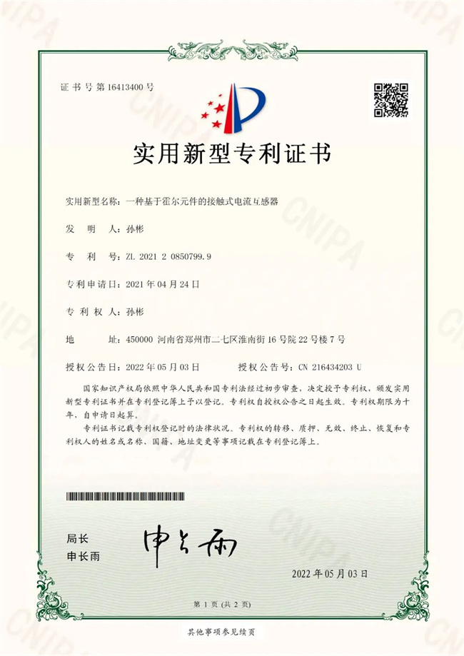 基于霍爾原件的接觸式電流互感器(排名第一)
