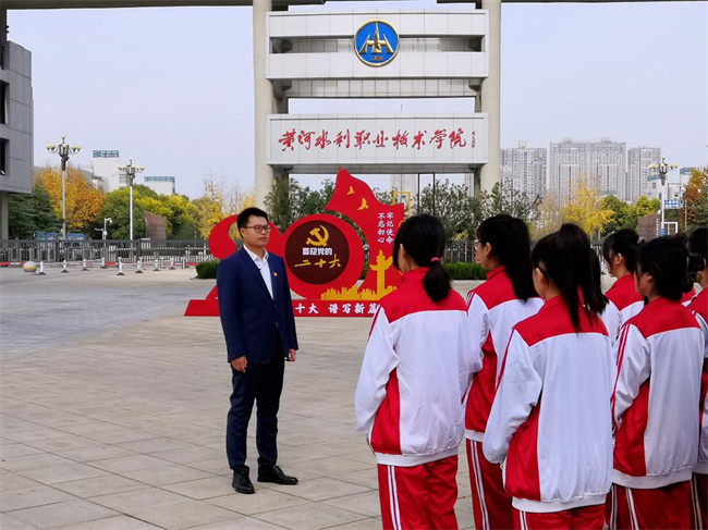 在室外校史館,他聲情并茂介紹了老校長王化云畢生致力于治理黃河,探索提出“寬河固堤”“除害興利,綜合利用”“蓄水?dāng)r沙”“上攔下排”等治河主張,為人民治黃事業(yè)作出重大貢獻、培養(yǎng)大批建設(shè)人才的輝煌成就。他講到,學(xué)校培養(yǎng)的賀樹明、謝會貴等一大批治水英才,長期扎根黃河一線,為大河安瀾譜寫了精彩華章,也為同學(xué)們樹立了榜樣。胡昊叮囑同學(xué)們,要肩負使命,苦練本領(lǐng),立志成為護佑黃河安瀾的能工巧匠、大國工匠。(黃河水利職業(yè)技術(shù)學(xué)院供稿)