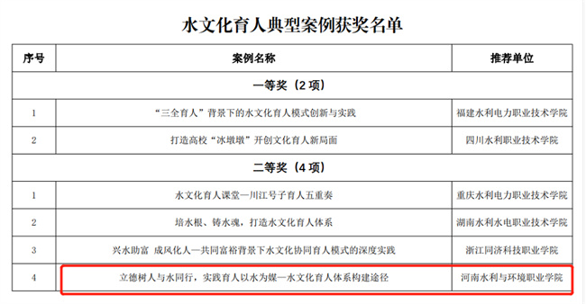 河南水利與環(huán)境職業(yè)學(xué)院獲全國(guó)水文化育人典型案例評(píng)選佳績(jī)