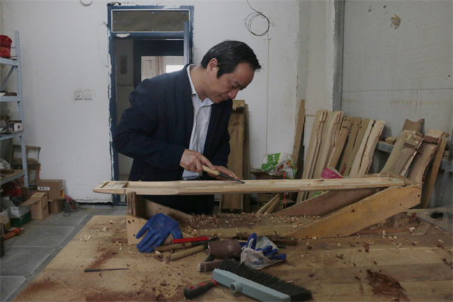 擦,擦,擦……刨子來來回回,木屑紛紛揚揚,一股木質(zhì)清香夾雜著油漆散發(fā)出來的氣味撲面而來。這樣的重復(fù)勞動早已成為了顧永杰的肌肉記憶,而這味道對他而言又是如此的熟悉親切。