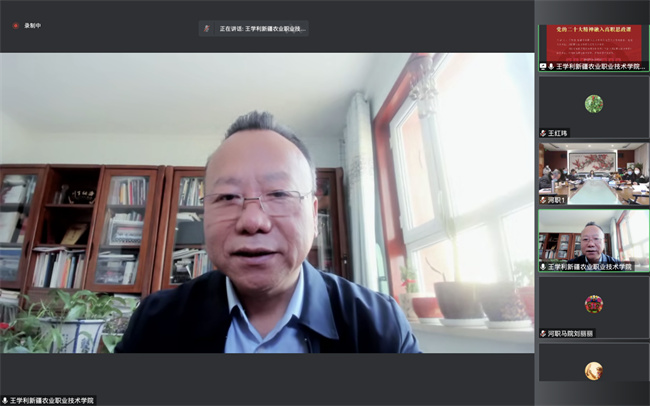 新疆農(nóng)業(yè)職業(yè)技術(shù)學(xué)院馬克思主義學(xué)院院長(zhǎng)王學(xué)利教授作了《黨的二十大精神融入高職思政課的幾點(diǎn)思考》專題講座。他從全面認(rèn)識(shí)黨的二十大報(bào)告邏輯結(jié)構(gòu)、把中國(guó)化時(shí)代化的馬克思主義融入高職思政課作為重點(diǎn)和給誰(shuí)教怎樣教問題上下功夫等三個(gè)方面系統(tǒng)講授了把黨的二十大精神融入思政課應(yīng)把握的重點(diǎn)內(nèi)容,并結(jié)合職業(yè)教育的類型特征,提出思政課教師要針對(duì)學(xué)生不同的性格稟賦、興趣特長(zhǎng)、素質(zhì)潛力,因材施教,打造良好的思政課教學(xué)生態(tài),在德技并修、工學(xué)結(jié)合上下功夫,努力為國(guó)家培養(yǎng)更多高素質(zhì)的技術(shù)技能人才。