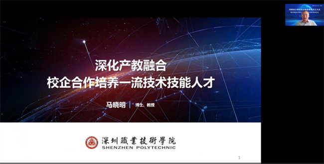 在人才培養(yǎng)高峰論壇階段,深圳職業(yè)技術(shù)學(xué)院副校長馬曉明教授以《深化產(chǎn)教融合校企合作培養(yǎng)一流技術(shù)技能人才》為題作專題報(bào)告。他結(jié)合實(shí)際從職業(yè)教育政策背景、對(duì)接產(chǎn)業(yè)設(shè)置專業(yè)、培養(yǎng)一流技術(shù)技能人才三個(gè)方面,介紹了深圳職業(yè)技術(shù)學(xué)院在教育教學(xué)實(shí)踐中的先進(jìn)經(jīng)驗(yàn)。他指出,要做好產(chǎn)教融合、校企合作,“內(nèi)在需求”是前提,“畢業(yè)生質(zhì)量”是核心,“文化相融”是基礎(chǔ),“課程體系”是內(nèi)容,“強(qiáng)強(qiáng)合作”是保證。報(bào)告內(nèi)容詳實(shí)、精彩紛呈,具有很強(qiáng)的針對(duì)性、指導(dǎo)性和實(shí)踐性。