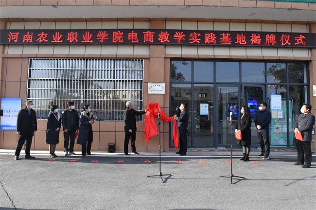陳建軍、張鵬共同為河南農(nóng)業(yè)職業(yè)學(xué)院電商教學(xué)實(shí)踐基地揭牌。
