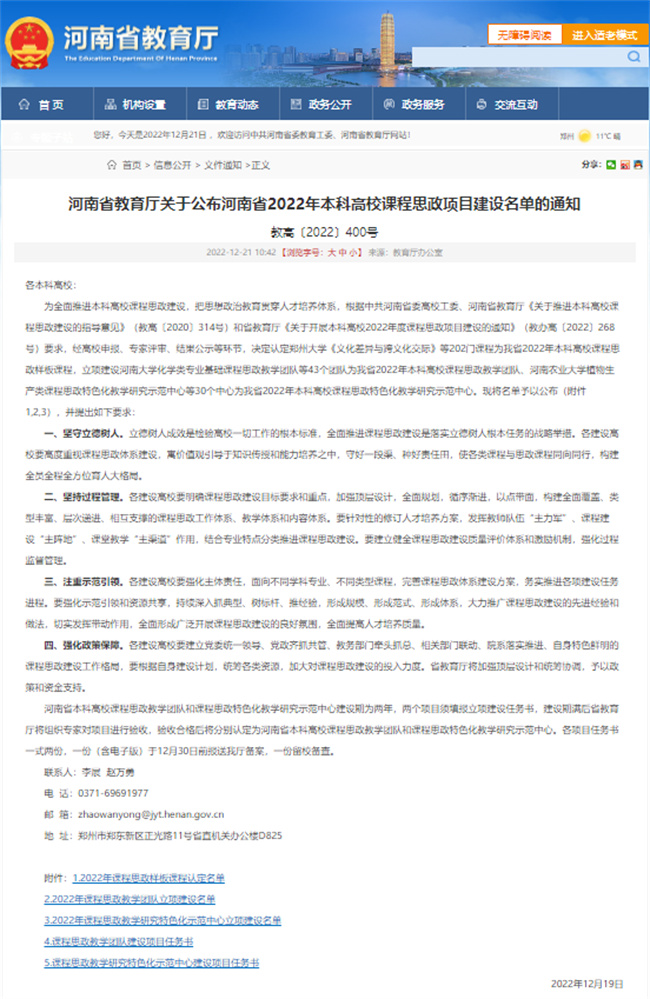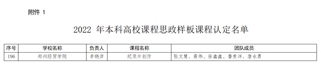 河南省教育廳關(guān)于公布河南省2022年本科高校課程思政項目建設(shè)名單的通知