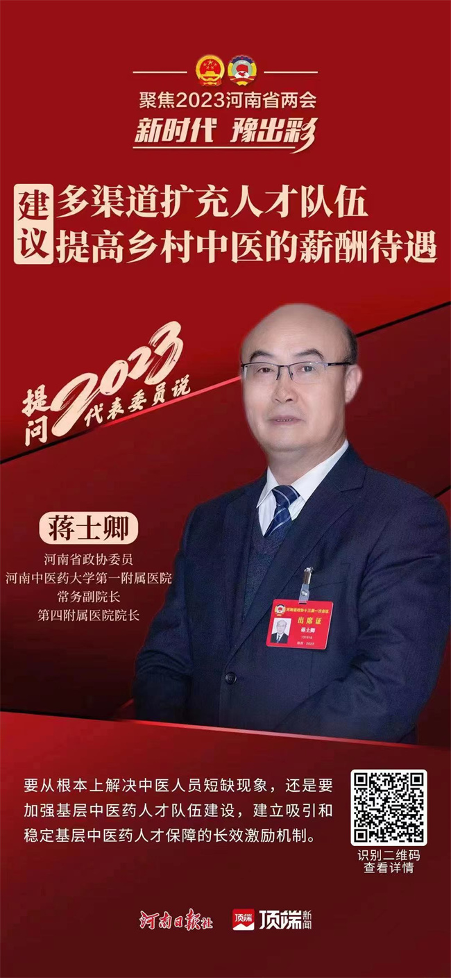 今年是省政協(xié)委、中國(guó)農(nóng)工民主黨省委常委、河南中醫(yī)藥大學(xué)第一附屬醫(yī)院常務(wù)副院長(zhǎng)、第四附屬醫(yī)院院長(zhǎng)蔣士卿履職的第六個(gè)年頭,10多年來(lái),蔣士卿將目光聚焦在河南省基層中醫(yī)館建設(shè)方面。他提出,建議加強(qiáng)基層中醫(yī)館人才培養(yǎng),壯大基層中醫(yī)藥人才隊(duì)伍;具有抗病毒作用的中藥材需求量大,建議對(duì)這類中藥材集中帶量采購(gòu);建議支持三甲中醫(yī)醫(yī)院制定抗疫中藥系列院內(nèi)制劑并納入醫(yī)保;建議開通中醫(yī)藥對(duì)外交流合作綠色通道,加大優(yōu)質(zhì)中藥材基地建設(shè),完善市場(chǎng)流通體系,建設(shè)現(xiàn)代化中藥材物流交易中心。