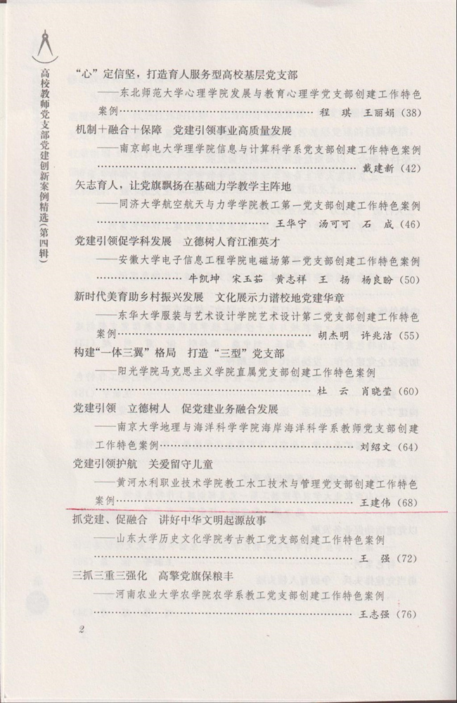 該校教工水工技術(shù)與管理黨支部以“五好黨支部”為標(biāo)準(zhǔn),深化體制機(jī)制建設(shè),推進(jìn)黨建工作與業(yè)務(wù)工作深度融合,傾心構(gòu)建了“四個(gè)二、五個(gè)一”“2+1+X”年度、月度黨建工作法,精心制定了《支部黨員學(xué)習(xí)制度》《支部黨員評(píng)先評(píng)優(yōu)管理制度》《支部活動(dòng)制度》《支部書柜圖書借閱制度》等四項(xiàng)工作制度,呈現(xiàn)出政治理論學(xué)習(xí)深入系統(tǒng)、支部特色活動(dòng)生動(dòng)持久、新聞宣傳材料及時(shí)鮮活等特色亮點(diǎn)。該支部連續(xù)四年獲評(píng)學(xué)校先進(jìn)基層黨組織,是全國(guó)高校“雙帶頭人”教師黨支部書記工作室培育創(chuàng)建單位。本次收入《案例精選》的“關(guān)愛留守兒童”特色活動(dòng),開始于2017年9月,支部在通許縣大崗李鄉(xiāng)小崗郭村小學(xué)建立了“留守兒童愛心家園”,目前已連續(xù)6年開展了13次愛心幫扶;顒(dòng)為孩子們送去了學(xué)習(xí)、生活用品,傳遞了黨的關(guān)懷、愛的溫暖、社會(huì)的正能量,用黨的偉大精神引領(lǐng)青少年奮進(jìn)新征程。