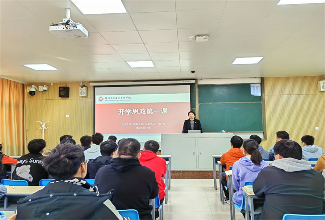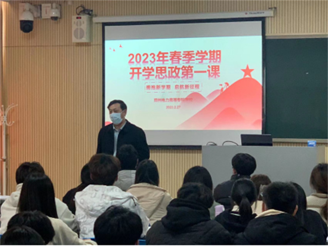 2月24日上午,鄭州電力高等?茖W校黨委委員、副校長黃鵬走進軟件技術專業(yè)學生課堂,為同學們講授2023年春季學期“開學思政第一課”,100余名師生代表現(xiàn)場聆聽了講座,其余學生通過網(wǎng)絡直播線上收看學習。黃校長結合學校發(fā)展形勢及時代特點,對青年學生的成長成才提出了幾點希望和要求:一是要認識“大”與“小”;二是要做到能“上”能“下”;三是要品味大學百味;四要做有為青年。他勉勵同學們要堅定不移聽黨話、跟黨走,立志做有理想、敢擔當、能吃苦、肯奮斗的新時代好青年。