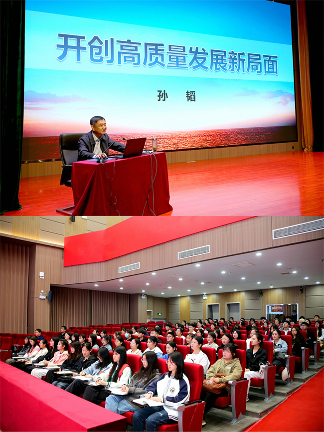 孫韜以黨的二十大報(bào)告中“加快構(gòu)建新發(fā)展格局,著力推動高質(zhì)量發(fā)展”為主題,從“高質(zhì)量發(fā)展是關(guān)系全局的首要任務(wù)”“高質(zhì)量發(fā)展深刻豐富的內(nèi)涵要求”“著力推動高質(zhì)量發(fā)展的戰(zhàn)略部署”和“職業(yè)教育高質(zhì)量發(fā)展助推經(jīng)濟(jì)社會高質(zhì)量發(fā)展”等四個(gè)方面,圍繞“如何開創(chuàng)高質(zhì)量發(fā)展新局面”這一核心內(nèi)容進(jìn)行了深入講解。