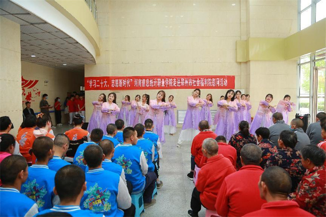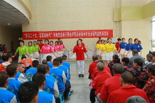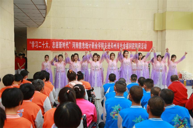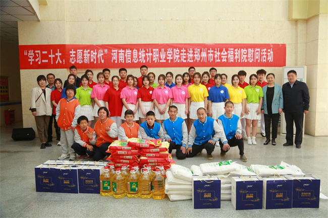 中新河南網(wǎng)4月13日電 4月11日,河南信息統(tǒng)計(jì)職業(yè)學(xué)院志愿服務(wù)隊(duì)30余人,前往鄭州市社會(huì)福利院舉行“學(xué)習(xí)二十大 志愿新時(shí)代”——河南信息統(tǒng)計(jì)職業(yè)學(xué)院走進(jìn)鄭州市社會(huì)福利院慰問(wèn)活動(dòng),看望、慰問(wèn)福利院的孤寡老人和兒童,進(jìn)行慰問(wèn)演出,并送去大米、食用油、面粉、牛奶等慰問(wèn)品。學(xué)校宣傳統(tǒng)戰(zhàn)部、校團(tuán)委負(fù)責(zé)人和鄭州市社會(huì)福利院黨總支書記張喜成、院長(zhǎng)張春萍出席活動(dòng)。