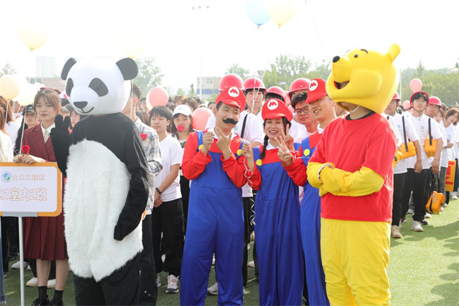 42名教職工化身運動健將,表演了第九套廣播體操,展示了力量與美感,體現(xiàn)了學校教職工拼搏進取、團結(jié)一致的向上精神。由484名學生帶來的“體育+團學教育活動展示”原創(chuàng)節(jié)目,融合健美操、武術(shù)等表演形式,從“開創(chuàng)未來”、“青春活力”、“精忠報國”三個篇章,展現(xiàn)了水環(huán)學子們“報效祖國,一生所向”的家國情懷和“齊心協(xié)力,砥礪奮進”的團結(jié)精神,成為開幕式的一大亮點。