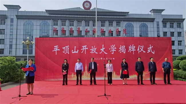 儀式上,趙繼紅和史曉天共同為平頂山開放大學揭牌。張昌升宣讀了《平頂山市人民政府關于將平頂山廣播電視大學更名為平頂山開放大學的批復》。