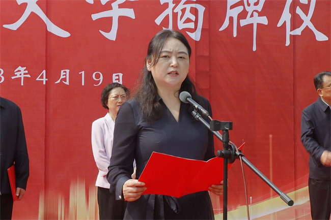 史曉天代表平頂山市人民政府向開放大學的成立表示祝賀。她指出,平頂山廣播電視大學建校40多年來,牢記“為黨育人、為國育才”使命,緊貼社會需求,勇?lián)鷷r代重任,培養(yǎng)了十萬多名實用型、技能型人才,為我市經(jīng)濟社會發(fā)展作出了積極貢獻。希望學校以此次更名為新的起點,積極適應數(shù)字化、智能化、終身化、融合化教育發(fā)展趨勢,緊緊圍繞開放大學綜合改革要求,堅持內涵特色發(fā)展,不斷提高辦學質量和水平,為推動我市經(jīng)濟社會發(fā)展作出新的更大貢獻。希望河南開放大學對我市開放教育工作給予更多的支持和指導。平頂山市政府將一如既往地關心支持開放大學的建設與發(fā)展,推動學校建設成為具有鮮明特色、國內一流的開放大學。