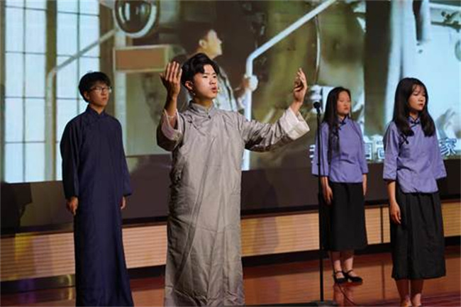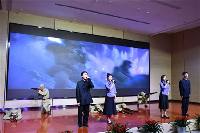 同學(xué)們在誦讀中回望歷史感悟紅色力量,使學(xué)校廣大青年學(xué)子對經(jīng)典浸潤、文化育人有了更深刻的認(rèn)識和感悟。節(jié)目最后,歌曲《追尋》將活動氛圍推向頂點。