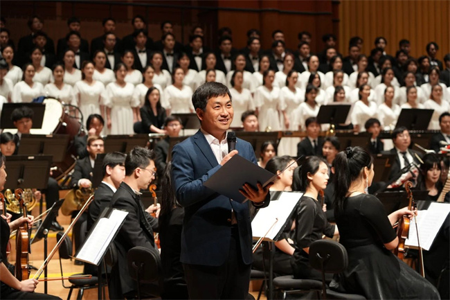 音樂(lè)會(huì)開(kāi)場(chǎng),河南機(jī)電職業(yè)學(xué)院黨委宣傳統(tǒng)戰(zhàn)部部長(zhǎng)、音樂(lè)學(xué)院黨總支書記李想在致辭中介紹,知行交響樂(lè)團(tuán)自2021年成立以來(lái),把舞臺(tái)當(dāng)教室、把教室當(dāng)舞臺(tái),以演出推動(dòng)教學(xué),在校內(nèi)外舉辦近百場(chǎng)演出,受眾超過(guò)五萬(wàn)人,極大豐富了師生校園文化生活。李想對(duì)關(guān)心支持河南機(jī)電職業(yè)學(xué)院音樂(lè)學(xué)院的各級(jí)領(lǐng)導(dǎo)和社會(huì)各界人士表示衷心感謝和崇高的敬意。