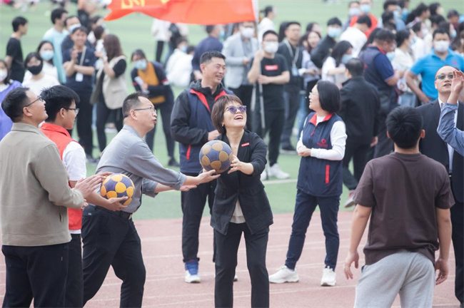 中新河南網(wǎng)4月26日電(王凱 王炳愷 王鵬豪) 4月20日下午,鄭州升達經(jīng)貿(mào)管理學(xué)院“新鄭農(nóng)商行杯”教職工趣味運動會勝利閉幕。校黨委書記雷霆、校長張欣、副校長兼工會主席張金安、副校長兼總務(wù)長張其武等領(lǐng)導(dǎo)和特邀嘉賓新鄭農(nóng)商銀行孟莊支行行長陳冠華、新鄭農(nóng)商銀行龍湖支行行長行長李紅昌、各單位教職工近千人參加了閉幕式。