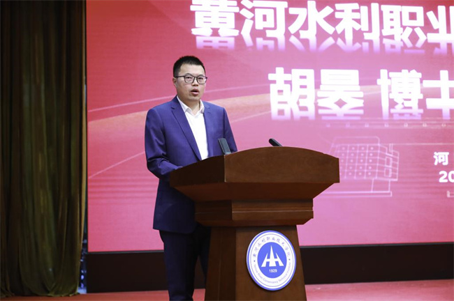 胡昊致歡迎辭,并介紹學(xué);厩闆r。他指出,智慧水務(wù)現(xiàn)代產(chǎn)業(yè)學(xué)院的成立,是對(duì)標(biāo)教育部職業(yè)本科產(chǎn)業(yè)學(xué)院要求的具體實(shí)踐。作為國(guó)內(nèi)第一家“智慧水務(wù)現(xiàn)代產(chǎn)業(yè)學(xué)院”,黃河水院與北控水務(wù)將攜手共同在人才培養(yǎng)、科學(xué)研究、技術(shù)服務(wù)、資源共建、大賽舉辦、師資培養(yǎng)、頂崗實(shí)習(xí)、生態(tài)環(huán)境產(chǎn)教聯(lián)盟建設(shè)等8大板塊開(kāi)展合作,為我國(guó)水利職業(yè)院,F(xiàn)代產(chǎn)業(yè)學(xué)院建設(shè)做示范、做引領(lǐng)。通過(guò)建設(shè)產(chǎn)教深度融合的產(chǎn)業(yè)學(xué)院管理體制與運(yùn)行機(jī)制,全方位構(gòu)建產(chǎn)教融合校企合作協(xié)同育人命運(yùn)共同體。將智慧水務(wù)現(xiàn)代產(chǎn)業(yè)學(xué)院建成產(chǎn)教深度融合的樣板典范、培養(yǎng)高素質(zhì)技術(shù)技能型人才的搖籃和服務(wù)地方及產(chǎn)業(yè)發(fā)展的高地。胡昊強(qiáng)調(diào),2023年是全面貫徹落實(shí)黨的二十大精神的開(kāi)局之年,是實(shí)施“十四五”規(guī)劃承上啟下的關(guān)鍵之年,也是推進(jìn)血學(xué)校“雙高計(jì)劃”建設(shè)驗(yàn)收、職業(yè)本科申辦的關(guān)鍵之年。學(xué)校將以智慧水務(wù)現(xiàn)代產(chǎn)業(yè)學(xué)院為契機(jī),持續(xù)與北控水務(wù)集團(tuán)全面開(kāi)展合作,積極發(fā)揮產(chǎn)教融合型職業(yè)院校示范引領(lǐng)作用,在優(yōu)化專(zhuān)業(yè)布局、推進(jìn)協(xié)同育人、雙師型教師培養(yǎng)、服務(wù)企業(yè)創(chuàng)新發(fā)展等方面,聯(lián)手打造校企合作發(fā)展高地,培養(yǎng)適合經(jīng)濟(jì)社會(huì)發(fā)展需要的高素質(zhì)技術(shù)技能人才,創(chuàng)新現(xiàn)代職業(yè)教育發(fā)展范式,貢獻(xiàn)職業(yè)教育的黃河水院智慧,不斷譜寫(xiě)產(chǎn)教融合、科教融匯新篇章!