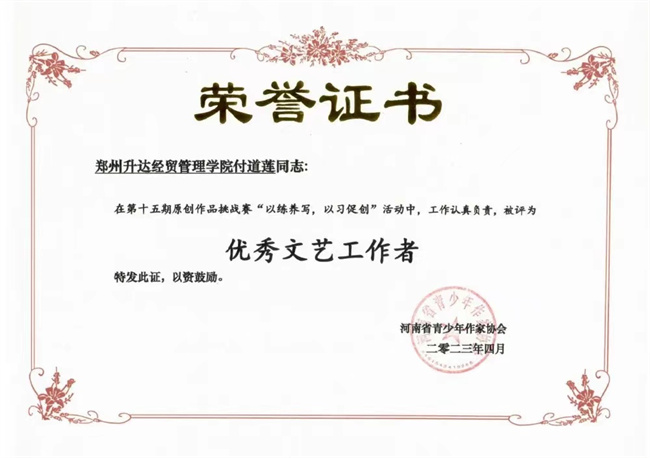 鄭州升達經貿管理學院夢盈文學社在河南省大學生原創(chuàng)作品挑戰(zhàn)賽中喜獲佳績