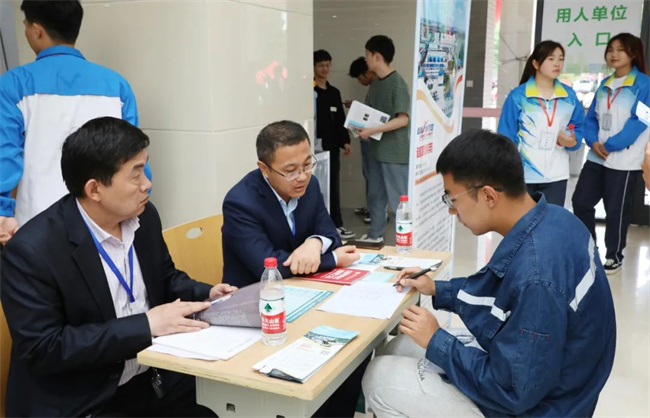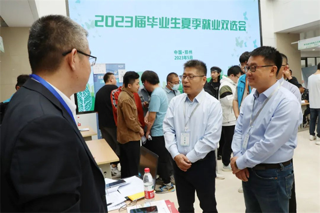 鄭州電力高等?茖W(xué)校黨委書記楊義波、副校長黃鵬等蒞臨雙選會現(xiàn)場調(diào)研指導(dǎo)。在雙選會現(xiàn)場,楊義波一行與用人單位深入交流,詳細(xì)了解行業(yè)最新發(fā)展動態(tài)、企業(yè)崗位招聘需求、工作待遇和發(fā)展前景,詢問聽取用人單位對學(xué)校人才培養(yǎng)、專業(yè)建設(shè)、實(shí)習(xí)實(shí)訓(xùn)、就業(yè)工作的意見建議,溝通達(dá)成進(jìn)一步加強(qiáng)校企合作、深化產(chǎn)教融合、助力企業(yè)發(fā)展、促進(jìn)高質(zhì)量充分就業(yè)的一致意愿。在就業(yè)指導(dǎo)服務(wù)臺,楊義波看望慰問奮戰(zhàn)在就業(yè)一線的輔導(dǎo)員、班主任等就業(yè)專兼職人員,要求大家用心、用情、用力,全員、全過程、全方位,一生一策、一人一檔、一對一指導(dǎo)幫扶,服務(wù)保障畢業(yè)生早就業(yè)、就好業(yè)、啟航新程、逐夢未來。在與畢業(yè)生交談時(shí),楊義波勉勵(lì)畢業(yè)生仰望星空、腳踏實(shí)地、服務(wù)祖國、建功基層,敢于把未來個(gè)人職業(yè)發(fā)展定位到職場一線,從基層做起,既接受職場挑戰(zhàn),也通過自己的努力促進(jìn)行業(yè)企業(yè)的發(fā)展,在平凡的崗位上為技能中國建設(shè)、社會主義現(xiàn)代化強(qiáng)國建設(shè)做出不平凡的業(yè)績。