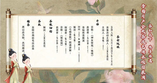 盧仝煎茶技藝傳承項(xiàng)目組將在5月14日舉辦首次展演,把首場展演選在母親節(jié),是飲水思源,向盧仝煎茶技藝傳承的拓荒者李菊月老師致敬之意。盧仝的《七碗茶歌》在中國茶文化史上留下了濃墨重彩的一筆。唐、宋、元、明、清時(shí)期三百多首詩篇與盧仝有關(guān)。
