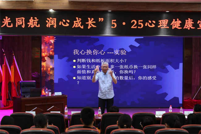 南陽理工學(xué)院心理健康教育中心原主任、南陽師范學(xué)院心理健康教育中心兼職教授葛寶岳作心理培訓(xùn)。培訓(xùn)內(nèi)容從與學(xué)生談心談話技術(shù)操作實務(wù)、參賽時的應(yīng)對策略以及危機(jī)干預(yù)話術(shù)三個部分展開。葛教授向老師們分享了與學(xué)生談心談話的技巧,為進(jìn)一步提高輔導(dǎo)員的職業(yè)技能提出了詳細(xì)的指導(dǎo)與建議。各位輔導(dǎo)員紛紛表示,要以這次“5.25心理健康宣傳月”活動為契機(jī),認(rèn)真查找存在的問題,深鉆細(xì)悟,努力提升自己的學(xué)生管理能力和水平,為學(xué)院學(xué)生管理工作邁上新臺階作出應(yīng)有的貢獻(xiàn)。