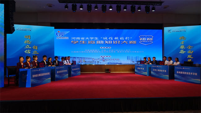 據(jù)悉,此次河南省大學(xué)生“誠(chéng)信校園行”學(xué)生資助知識(shí)大賽以“昂首闊步新時(shí)代 樹(shù)信立德展風(fēng)采”為主題,由河南省教育廳、中國(guó)人民銀行鄭州中心支行、中國(guó)銀行保險(xiǎn)監(jiān)督管理委員會(huì)河南監(jiān)管局、國(guó)家開(kāi)發(fā)銀行河南省分行聯(lián)合主辦。