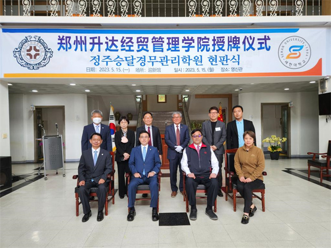 中新河南網(wǎng)5月25日電(崔東麗) 5月15日至16日,鄭州升達(dá)經(jīng)貿(mào)管理學(xué)院執(zhí)行董事王新奇率團(tuán)赴韓國世翰大學(xué)參訪交流。5月15日上午,該校與韓國世翰大學(xué)互設(shè)分院簽約儀式暨世翰大學(xué)升達(dá)分院揭牌儀式在世翰大學(xué)成功舉行。學(xué)校執(zhí)行董事王新奇、實(shí)訓(xùn)管理處處長程敏姿,韓國世翰大學(xué)校長李昇勛、副校長楊福莞、國際交流院院長沈載淵、教育支援處處長金成哲、韓國語學(xué)堂長安鐘淇、外事處長孫多玉出席揭牌儀式。