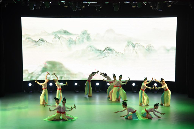 展演在舞蹈《成長在祖國的懷抱》中拉開序幕,音樂學(xué)院學(xué)前教育專業(yè)的同學(xué)們以優(yōu)美的舞姿,生動形象地詮釋了生長在祖國的懷抱里、在黨的陽光下快樂成長的拳拳之心。李娜 、翟冰雨等同學(xué)深情演繹的《春風(fēng)十萬里》,用歌曲再現(xiàn)了“枝頭桃花紅,陌上楊柳綠,這方才播種,那邊又開犁,燕子飛來了,銜來滿嘴泥”的春天景象,歌頌我們偉大祖國朝氣蓬勃、欣欣向榮的大好局面。吳建華、馬雯兩位老師傾情演唱的歌曲《把一切獻(xiàn)給黨》,表達(dá)了廣大師生員工對黨忠誠不渝,對信仰矢志不移,甘愿為了理想奉獻(xiàn)青春、奉獻(xiàn)生命的堅定信念和滿腔豪情。由音樂學(xué)院師生聯(lián)袂演出的壓軸歌舞《復(fù)興的力量》,以磅礴的氣勢,表達(dá)了中華兒女為實現(xiàn)中華民族偉大復(fù)興中國夢的決心。舞蹈《書的流離》、《灼灼芳華》、《只此青綠》和《烈火中永生》,快板《道路》,古箏協(xié)奏曲《定風(fēng)波》、話劇《一九四二》片段等節(jié)目輪番上演,精彩紛呈。整場展演以豐富多彩的藝術(shù)表現(xiàn)形式,展現(xiàn)了悠久燦爛的中華文化,幸福美好的時代生活,真摯動人的愛國主義情懷,弘揚了社會主義核心價值觀,歌頌了中國共產(chǎn)黨團(tuán)結(jié)帶領(lǐng)中國人民經(jīng)過艱苦卓絕的奮斗在社會主義革命和建設(shè)中所取得的偉大成就。全體參演師生精神飽滿,激情洋溢,精彩的表演和精湛的技能,贏得現(xiàn)場觀眾陣陣掌聲。