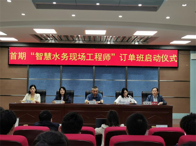 劉玉賓在致辭中指出,本次訂單班是深入貫徹落實(shí)黨的二十大精神,推進(jìn)職普融通、產(chǎn)教融合、科教融匯,加快生態(tài)環(huán)境類高素質(zhì)現(xiàn)場(chǎng)工程師的培養(yǎng),促進(jìn)教育鏈、人才鏈、產(chǎn)業(yè)鏈與創(chuàng)新鏈的有機(jī)銜接的重要體現(xiàn),是該校全面實(shí)踐中國(guó)特色學(xué)徒制,健全校企協(xié)同發(fā)展新機(jī)制,形成技術(shù)技能人才緊缺領(lǐng)域系統(tǒng)儲(chǔ)能、賦能的環(huán)境保護(hù)人才培養(yǎng)培訓(xùn)生態(tài)的重要舉措。學(xué)校將根據(jù)校企合作協(xié)議及訂單培養(yǎng)協(xié)議的要求,并堅(jiān)持以推動(dòng)就業(yè)為導(dǎo)向,以服務(wù)學(xué)生為宗旨,以實(shí)現(xiàn)零距離就業(yè)為目標(biāo),堅(jiān)持有利于學(xué)生、企業(yè)、學(xué)校三方發(fā)展,促進(jìn)校企互利合作、資源共享,促進(jìn)教學(xué)相長(zhǎng),做好學(xué)生的教育、管理工作,使訂單學(xué)生盡快實(shí)現(xiàn)由學(xué)生向訂單企業(yè)員工身份的轉(zhuǎn)變,全面提高學(xué)生的綜合素質(zhì)和職業(yè)能力。希望借此契機(jī),把訂單班辦出特色來、辦出成績(jī)來;希望訂單班同學(xué)們好好學(xué)習(xí),拼搏向上,為生態(tài)環(huán)境保護(hù)行業(yè)輸送優(yōu)質(zhì)的智慧水務(wù)領(lǐng)域創(chuàng)新型、復(fù)合型人才。