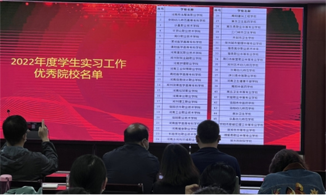 會(huì)上,省教育廳職成教處副處長(zhǎng)王凱作重要講話,內(nèi)容涉及分析各職業(yè)學(xué)校實(shí)習(xí)管理工作開展情況、職業(yè)院校實(shí)習(xí)管理以案促改工作情況總結(jié),并安排2023-2024年河南省職業(yè)院校學(xué)生實(shí)習(xí)有關(guān)工作。省教育廳職成教處蔡崇宣讀了2022年度河南省職業(yè)院校學(xué)生實(shí)習(xí)工作優(yōu)秀院校名單,該院榮獲“2022年度河南省職業(yè)院校學(xué)生實(shí)習(xí)工作優(yōu)秀院校”榮譽(yù)稱號(hào)。