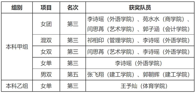 本屆比賽本科組共有來自全省近50所本科高校、500多名運動員參加,是歷屆大學(xué)生乒乓球比賽規(guī)模最大,參賽水平最高的一屆賽事。比賽中,鄭州升達經(jīng)貿(mào)管理學(xué)院隊員首次參加省賽,大家敢打敢拼,在比賽中團結(jié)一致,沉著應(yīng)對,頑強拼搏,連克強敵,展現(xiàn)出優(yōu)秀的比賽品質(zhì),取得了優(yōu)異成績,創(chuàng)造了乒乓球隊參加省賽最好成績,大幅度提高了學(xué)校乒乓球隊在省內(nèi)高校的知名度和地位,為學(xué)校爭得了榮譽,為建校30周年校慶增光添彩!