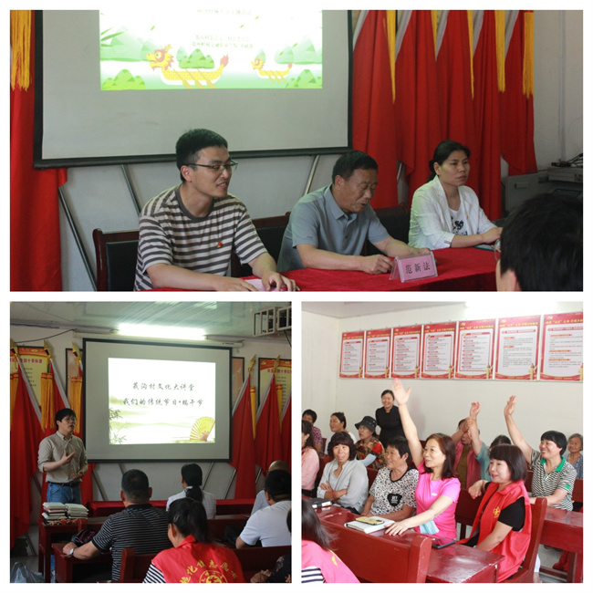 李森老師以《濃情粽香迎端午鄉(xiāng)風文明助振興》為題,從端午節(jié)的風俗、端午節(jié)的由來和走進屈原三個方面與各位村民進行了精彩分享,帶領(lǐng)大家領(lǐng)略中華傳統(tǒng)節(jié)日的魅力,感悟端午節(jié)的文化和內(nèi)涵,與屈原共情、激發(fā)愛國主義情感。在文化大講堂的互動環(huán)節(jié),莪溝村村民踴躍參與,積極搶答關(guān)于端午文化知識的問題,加深了村民對傳統(tǒng)文化的了解,堅定了文化自信,有力地促進了農(nóng)村精神文明建設。
