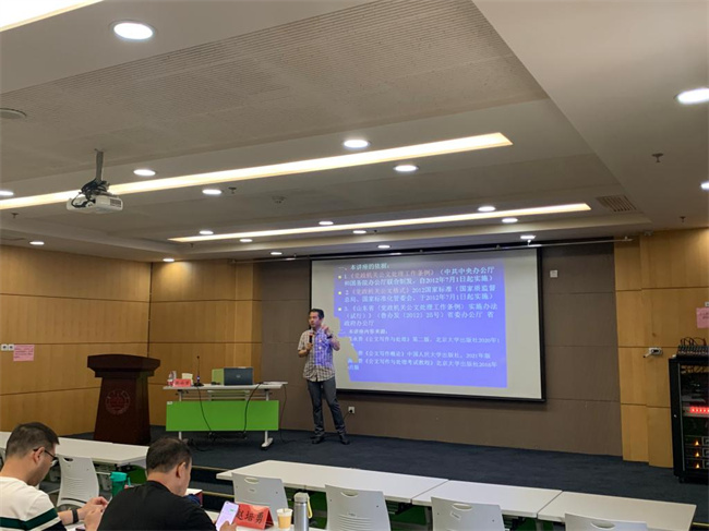 開班儀式結(jié)束后,山東大學(xué)政治學(xué)與公共管理學(xué)院高永貴教授以《公文寫作規(guī)范及技巧實(shí)務(wù)操作》為題作首場授課。高教授圍繞制發(fā)規(guī)范公文的具體標(biāo)準(zhǔn)、公文邏輯和方法進(jìn)行了細(xì)致講解,并結(jié)合范文進(jìn)行了深刻剖析,提高了學(xué)員對(duì)公文寫作標(biāo)準(zhǔn)和邏輯的理解度。