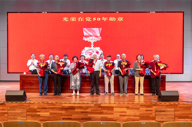 “光榮在黨50年”紀念章老黨員代表接授獎?wù)卢F(xiàn)場