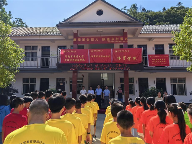 中新河南網(wǎng)7月21日電(王君樂(lè)) 為深入學(xué)習(xí)貫徹黨的二十大精神,引導(dǎo)青年學(xué)生堅(jiān)定責(zé)任擔(dān)當(dāng),把課堂學(xué)習(xí)和社會(huì)實(shí)踐緊密結(jié)合。2023年7月9日至15日,河南中醫(yī)藥大學(xué)體育學(xué)院以獲批體育浸潤(rùn)行動(dòng)計(jì)劃為契機(jī),以“山”為主線追尋總書記河南足跡,前往信陽(yáng)市新縣代咀九年一貫制學(xué)校開展“以體筑夢(mèng),浸潤(rùn)心靈”暑期“三下鄉(xiāng)”社會(huì)實(shí)踐活動(dòng),帶領(lǐng)組織老區(qū)的孩子們一起強(qiáng)身健體、傳承文化、啟心育智、厚植情懷。