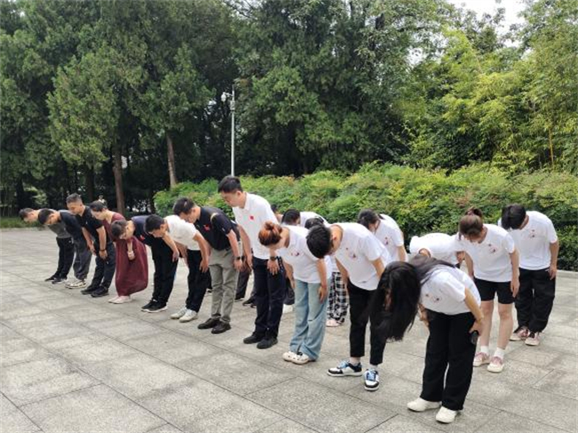 在革命烈士紀(jì)念碑前,社會(huì)實(shí)踐小分隊(duì)全體成員排著整齊的隊(duì)伍莊嚴(yán)肅立、集體鞠躬,表達(dá)對(duì)革命先烈的無(wú)限崇敬和沉重哀思。隨后,大家跟隨講解員的腳步進(jìn)入展館。館內(nèi)的歷史照片、斑駁兵器、泛黃書稿、生活用品和戰(zhàn)斗故事等,再現(xiàn)了鄂豫皖蘇區(qū)波瀾壯闊的革命歷史,記錄了潘忠汝、吳煥先等為中國(guó)革命“拋頭顱,灑熱血”革命英烈的崢嶸歲月。走出展廳,站在英烈廣場(chǎng),全體成員舉起右拳,用鏗鏘有力的聲音,莊嚴(yán)宣誓,再次重溫了矢志不渝的忠貞誓言。