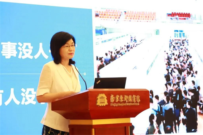 李桂貞以“人職匹配目標下重塑數字化職業(yè)教育新生態(tài)”為題,作專題報告,介紹了學校在人職匹配目標下,創(chuàng)新實踐分類精準育人模式,重塑職業(yè)教育新生態(tài)的做法與成效。李桂貞從現實需要、國家戰(zhàn)略和探索實踐三個方面系統(tǒng)闡述了學校創(chuàng)新實踐基于大數據的分類精準育人模式的實施背景,詳細介紹了學;诖髷祿母呗殞W生分類精準培養(yǎng)總體思路,通過“數據對接需求,分類導航導學”“重構教育資源,實施精準培養(yǎng)”“全方位多層次,實時動態(tài)診改”三個方面路徑,實踐“需求導向、專業(yè)引領、分類分階、精準施教”的“專業(yè)+X”人才培養(yǎng)模式,對學生進行“專業(yè)+管理/營銷/創(chuàng)新/創(chuàng)業(yè)”四類五階精準培養(yǎng),以數字技術賦能“教”與“學”,重構教育教學資源,為學生創(chuàng)建個性化、智慧化學習環(huán)境,促進學生全面發(fā)展、個性發(fā)展。她表示,該人才培養(yǎng)模式育人效果好、應用前景廣、社會關注度高,一定程度上實現了差異化的教、個性化的學、科學化的評,以“數字化”重塑職教新生態(tài),讓職業(yè)教育更加“有學頭、有盼頭、有奔頭”。
