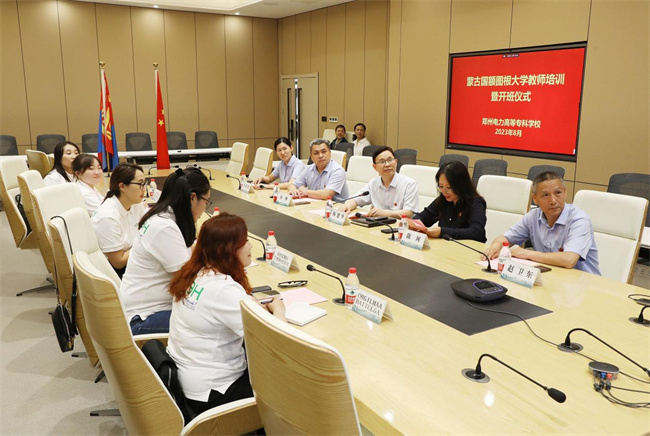中新河南網(wǎng)8月10日電(阿依古麗·艾力江) 8月7日上午,鄭州電力高等?茖W(xué)校舉辦了蒙古額圖根大學(xué)教師培訓(xùn)班開(kāi)班儀式。此次培訓(xùn)是該校與蒙古額圖根大學(xué)合作成立“蒙古教師培訓(xùn)中心”后的首次培訓(xùn)。