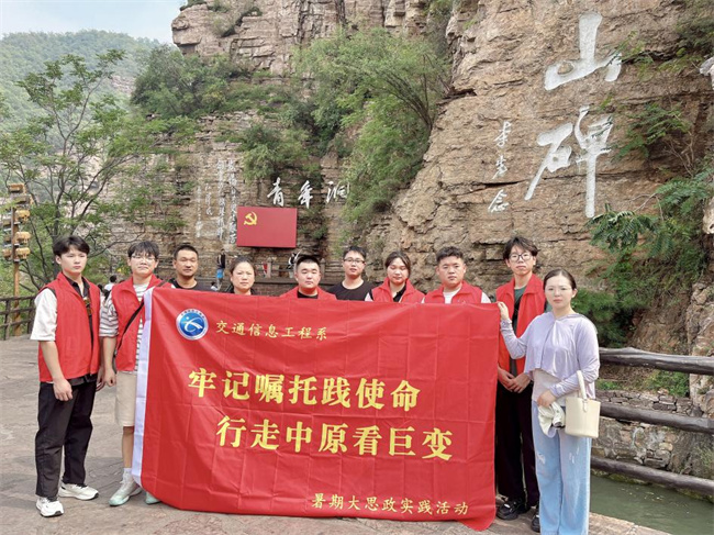 8月10日交通信息工程系紅旗渠實踐隊深入安陽市紅旗渠開展“牢記囑托踐使命 行走中原看巨變”暑期大思政實踐活動。紅旗渠實踐隊的隊員們先后來到紅旗渠紀念館、分水閘、青年洞進行實地學習。在參觀紅旗渠紀念館過程中,實踐隊邀請到紅旗渠講解員為同學們生動講述修渠故事。隊員們與講解員進行深入交流,并跟隨她重溫了林縣人民苦戰(zhàn)十個春秋,僅靠一錘、一釬、一雙手,在太行山的懸崖絕壁上修成人工天河紅旗渠的艱苦歷程,切實感受到了林縣人不認命、不服輸、敢于戰(zhàn)天斗地的英雄氣概和誓把河山重安排的豪情壯志。